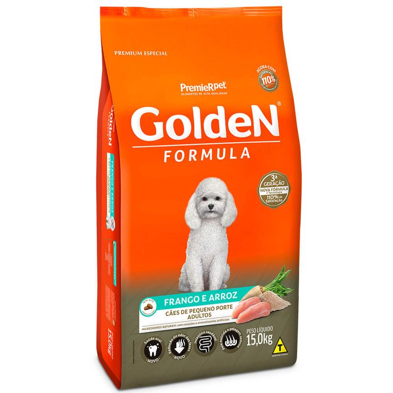 Golden Formula é um alimento do tipo Premium Especial que oferece a seu animal pele e pelagem mais bonitas e brilhantes, intestino mais saudável e consequentemente, fezes mais fáceis de limpar, além de não conter corantes nem aromatizantes artificiais, conferindo assim mais saúde e longevidade.