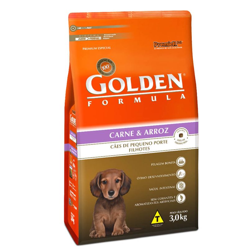 Ração Golden Fórmula Mini Bits Para Cães Filhotes de Porte Pequeno Sabor Carne e Arroz 3 kg