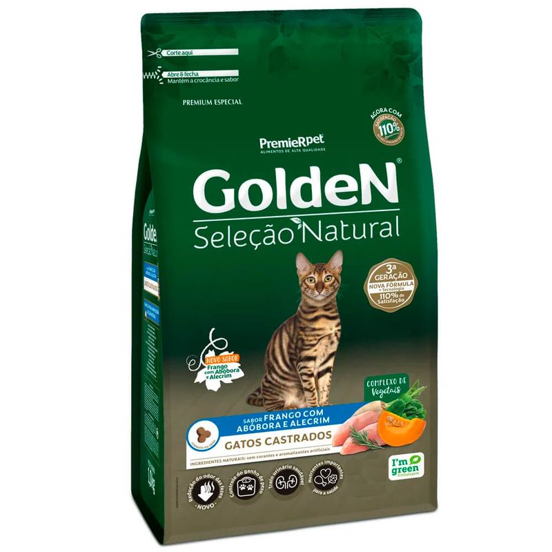 Ração Golden Seleção Natural Gatos Castrados Sabor Frango com Abóbora e Alecrim 3 kg