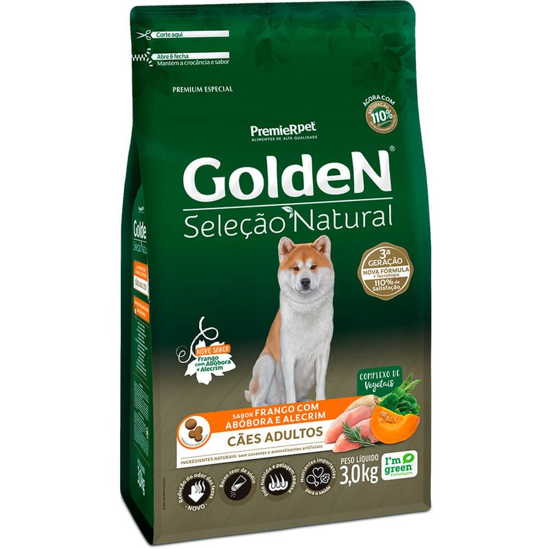 Contém baixo teor de sódio para ressaltar o sabor natural dos ingredientes, sem corantes e aromatizantes artificiais e sem ingredientes transgênicos, a linha Golden Seleção Natural é a melhor escolha para que seu pet tenha uma alimentação de acordo com seu estilo de vida. Golden Seleção Natural, saudável como seu estilo de vida.
