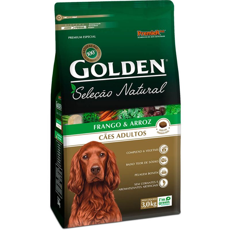Contém baixo teor de sódio para ressaltar o sabor natural dos ingredientes, sem corantes e aromatizantes artificiais e sem ingredientes transgênicos, a linha Golden Seleção Natural é a melhor escolha para que seu pet tenha uma alimentação de acordo com seu estilo de vida. Golden Seleção Natural, saudável como seu estilo de vida.