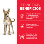 - Complexo exclusivo de ácidos graxos Ômega 6, vitamina E e outros nutrientes que auxiliam a manter a saúde da pele e a beleza da pelagem;