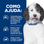 - Auxílio à redução do risco de formação de urólitos de estruvita e de oxalato de cálcio.