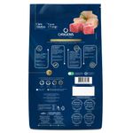 Farinha de carne e ossos bovino, farinha de vísceras de aves, milho integral moído*, farelo de trigo, farelo de soja**, óleo de vísceras de aves, palatabilizante de vísceras de suíno e frango, cloreto de sódio (sal comum), polpa de beterraba, semente de linhaça, maçã desidratada, vegetais desidratados (cenoura e espinafre), prebióticos (inulina e parede celular de levedura),extrato de yucca (0,04%), vitaminas (A, D3, E, C, K3, B1, B2, B6, B12, biotina, ácido fólico, pantotenato de cálcio, niacina, cloreto de colina), minerais (sulfato de ferro, sulfato de cobre, iodato de cálcio, óxido de manganês, óxido de zinco, proteinato de zinco, selenito de sódio, selênio levedura), ácido propiônico, BHA, BHT. Contém, na composição alimento geneticamente modificado: milho* e soja**. Espécies doadoras de gene: Agrobacterium spp.* **, Bacillus thuringiensis* **, Arabidopsis thaliana** e Streptomyces spp.* **
