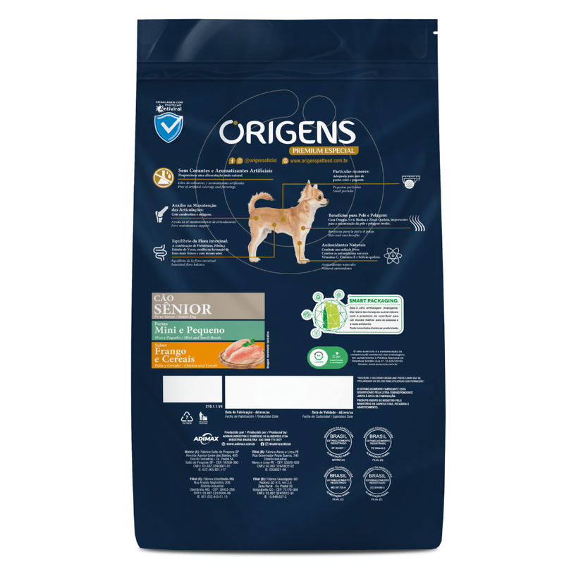 Farinha de carne e ossos bovino, farinha de vísceras de aves, milho integral moído*, farelo de trigo, óleo de vísceras de aves, palatabilizante de vísceras de suíno e frango, cloreto de sódio (sal comum), semente de linhaça, maçã desidratada, vegetais desidratados (cenoura, espinafre e polpa de beterraba), prebióticos (inulina e parede celular de levedura), extrato de yucca (0,04%), colágeno hidrolisado (0,04%), condroitina (0,01%), vitaminas (A, D3, E, C, K3, B1, B2, B6, B12, biotina, ácido fólico, pantotenato de cálcio, niacina, cloreto de colina), minerais (sulfato de ferro, sulfato de cobre, iodato de cálcio, óxido de manganês, óxido de zinco, proteinato de zinco, selenito de sódio, selênio levedura), taurina, ácido propiônico, BHA, BHT. Contém, na composição, alimento geneticamente modificado: milho*. Espécies doadoras de gene: Agrobacterium spp.*, Bacillus thuringiensis* e Streptomyces spp*.