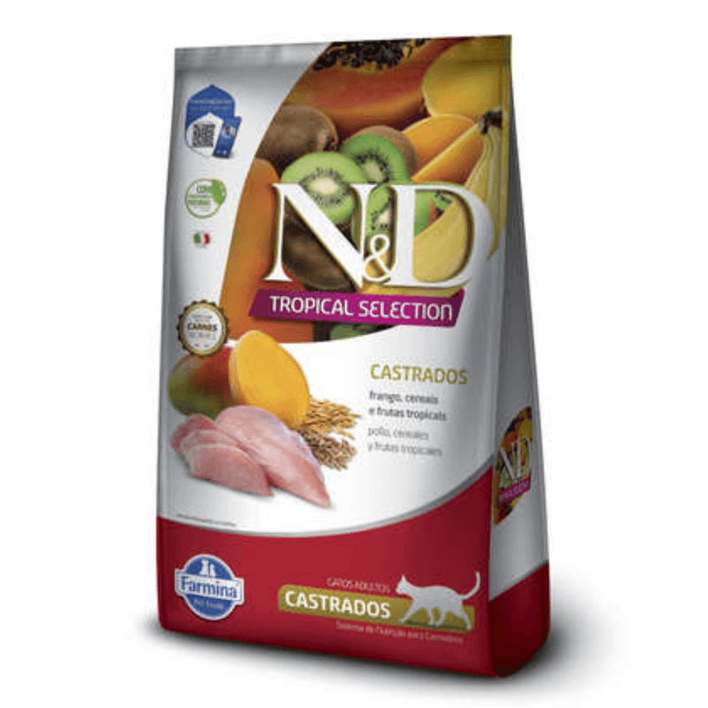 Frango (carne mecanicamente separada de frango, farinha de vísceras de aves – mín. 20%), cereais e frutas (aveia, grãos de sorgo, cevada em grãos, banana desidratada, mamão desidratado, kiwi desidratado, manga desidratada – mín. 35%), farinha de torresmo, ovo em pó, quirera de arroz, farelo de trigo, farinha de peixe, óleo de frango, óleo de peixe, polpa de beterraba, alfafa desidratada, celulose em pó, levedura seca de cervejaria, cenoura desidratada, aditivos prebióticos (FOS e MOS), DL-metionina, taurina, L-carnitina, sulfato de condroitina, sulfato de glicosamina, aditivos adsorventes (extrato de yucca e zeolita), hidrolisado de fígado de aves e suínos, vitaminas (A, D3, E, B1, B2, B5, B6, B12, C, biotina, niacina, ácido fólico, cloreto de colina), cloreto de sódio, cloreto de potássio, cloreto de amônio, ferro aminoácido quelato, cobre aminoácido quelato, zinco aminoácido quelato, manganês aminoácido quelato, proteinato de selênio, iodato de cálcio, propionato de cálcio, concentrado de tocoferóis.