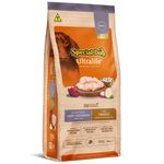 Composição: Farinha de vísceras de frango, arroz quebrado, milho integral moído*, farinha de batata-doce, farinha de ervilha, farelo de glúten de milho 60*, farelo de soja*, farelo de trigo, gordura de frango, óleo de peixe, farelo de arroz desengordurado, celulose, levedura seca de cana-de-açúcar, extrato de Yucca schidigera (0,04%), mananoligossacarídeos (0,048%), hidrolisado de fígado de frango e suíno, cloreto de sódio (sal comum), cloreto de potássio, DL-metionina, L-lisina, triptofano, vitamina A, vitamina D3, vitamina E, vitamina K3, vitamina B1, vitamina B2, vitamina B6, vitamina B12, vitamina C, niacina, cloreto de colina, ácido pantotênico, ácido fólico, biotina, iodato de cálcio, sulfato de cobre, sulfato de ferro, levedura enriquecida com selênio, proteinato de manganês, proteinato de zinco, propionato de cálcio, parede celular de levedura, acidificante, antioxidantes (BHA e BHT), corante natural caramelo.* Espécies doadoras: Agrobacterium tumefaciens, Bacillus thuringiensis, Streptomyces viridochromogenes