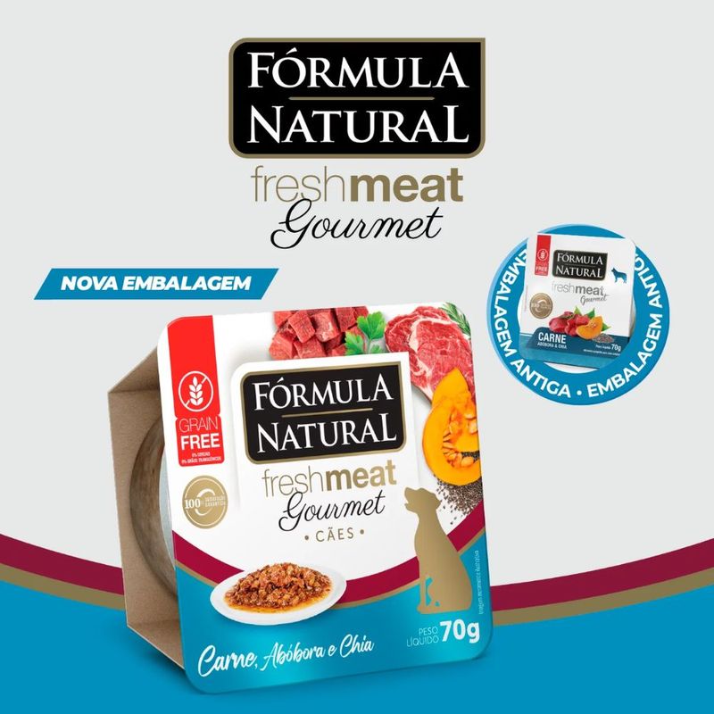 Uma linha de alimentos úmidos de alta qualidade para cães e gatos, com sabor delicioso que agrada aos paladares mais exigentes. Fórmula Natural Fresh Meat Gourmet é completa e por isso pode ser utilizada como alimento principal ou em conjunto com o alimento seco. Formulada com carne em pedaços como única fonte de proteína, não possui conservantes e corantes, além de ser livre de grãos. Pelo alto teor de água, colabora ainda para a saúde do trato urinário.