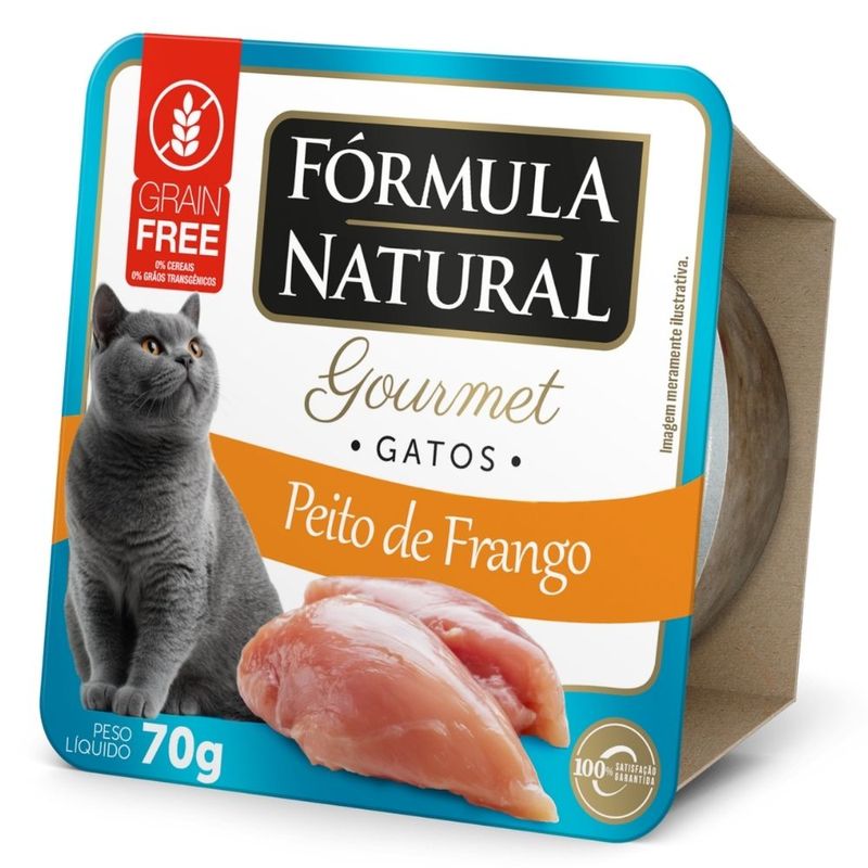 Fórmula Natural Gourmet Gatos Adultos Peito de Frango é um alimento úmido de alta qualidade para gatos adultos, indicado para momentos de agrado e recompensa. Desenvolvido com a combinação de carnes selecionadas e vegetais, oferece uma opção saborosa que valoriza o vínculo entre o responsável e seu pet. Fórmula Natural Gourmet não contém conservantes, corantes, ingredientes transgênicos nem a presença de grãos, reforçando o cuidado em oferecer uma experiência mais natural. Seu elevado teor de umidade também desempenha um papel importante, contribuindo para o cuidado com a saúde do trato urinário dos pets.