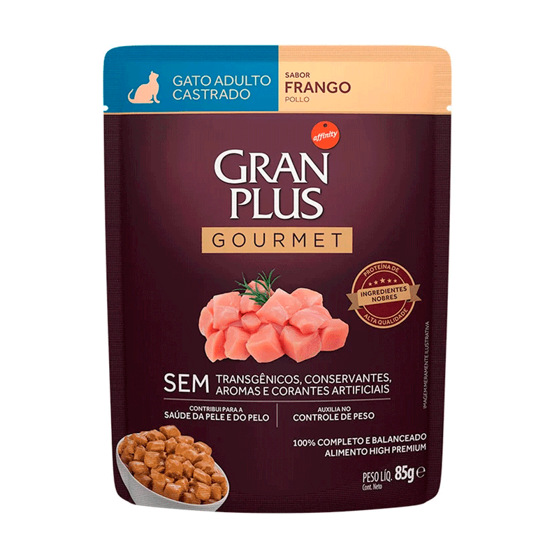 Carne Mecanicamente Separada de Frango, Fígado Suíno, Fígado de Frango, Pele de Aves, Óleo de Peixe Refi¬nado, Óleo de Linhaça, Farinha de Vísceras de Aves, Farinha de Trigo, Fibra de Cana-de-Açúcar, Água, Cloreto de Sódio (Sal Comum), Carbonato de Cálcio, Cloreto de Potássio, Goma Xantana, Corante Natural Caramelo, Taurina, L-Carnitina, DL-Metionina, Aditivo Prebiótico (Parede Celular de Levedura Fonte de Mananoligossacarídeos), Vitaminas (A, D3, E, K3, B1, B2, B6, B12, Pantotenato de Cálcio, Ácido Fólico, Ácido Nicotínico, Biotina, Cloreto de Colina), Minerais (Sulfato de Zinco, Sulfato de Ferro, Sulfato de Manganês, Iodato de Cálcio, Proteinato de Cobre, Levedura Enriquecida com Selênio).