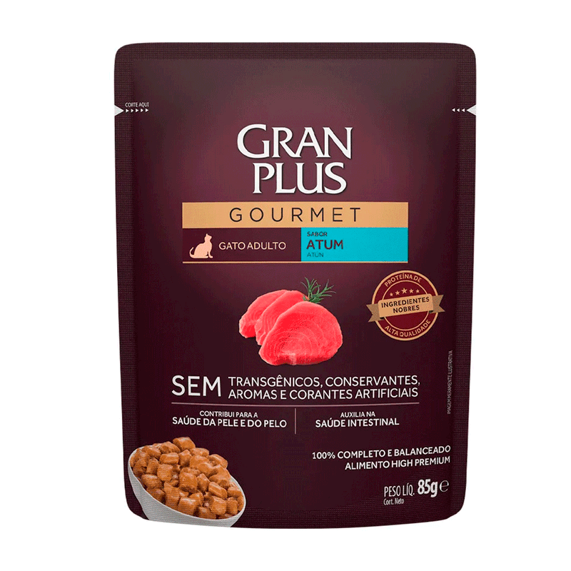 Carne Mecanicamente Separada de Frango, Farinha de Atum, Fígado Suíno, Fígado de Frango, Pele de Aves, Óleo de Peixe Refinado, Óleo de Linhaça, Farinha de Vísceras de Aves, Farinha de Trigo, Fibra de Cana-de-Açúcar, Água, Cloreto de Sódio (Sal Comum), Carbonato de Cálcio, Cloreto de Potássio, Goma Xantana, Corante Natural Caramelo, Taurina, DL-Metionina, Aditivo Prebiótico (Parede Celular de Levedura Fonte de Mananoligossacarídeos), Vitaminas (A, D3, E, K3, B1, B2, B6, B12, Pantotenato de Cálcio, Ácido Fólico, Ácido Nicotínico, Biotina, Cloreto de Colina), Minerais (Sulfato de Zinco, Sulfato de Ferro, Sulfato de Manganês, Iodato de Cálcio, Proteinato de Cobre, Levedura Enriquecida com Selênio).