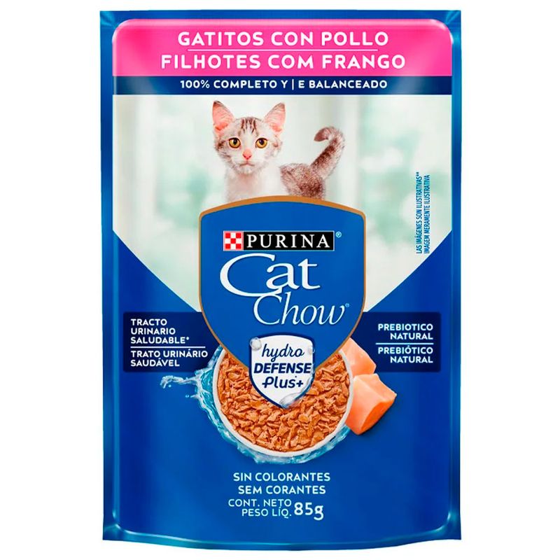carne mecanicamente separada de frango, fígado de frango, carcaça de frango, fígado suíno, glúten de trigo, proteína concentrada de soja, amido de milho, farinha de alga, fosfato bicálcico, carbonato de cálcio, cloreto de sódio (sal comum), cloreto de potássio, água, taurina, vitaminas (A, D3, E, K3, B1, B2, B3, B5, B6, B7, B9, B12, cloreto de colina), minerais (sulfato de zinco, proteinato de zinco, sulfato ferroso, sulfato de cobre, proteinato de cobre, sulfato de manganês, proteinato de manganê