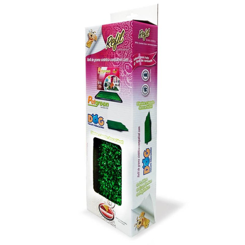 Refil feito com grama sintética, muito semelhante a grama natural. Feito com materiais atóxicos. Ecologicamente correto, lavável e econômico, pois dispensa o uso de tapetes higiênicos.