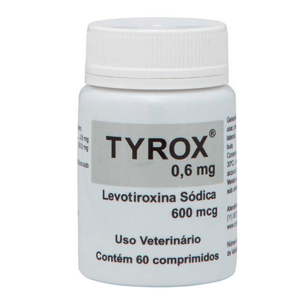 TYROX 0,6 mg proporciona uma reposição do hormônio da tireoide em todas as condições onde se verifica a produção inadequada do mesmo. O hipotireoidismo é uma doença metabólica generalizada, resultado da deficiência dos hormônios da tireoide. Os sinais mais característicos de hipotireoidismo em cães são: