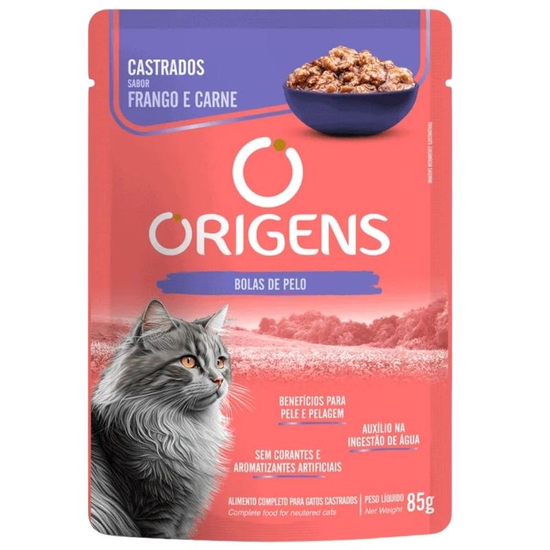 Origens Sachês é uma linha de alimentos úmidos premium especial, uma opção para os tutores que buscam oferecer ainda mais sabor e cuidado a cada refeição! Todos os alimentos da linha Origens Sachês são completos e balanceados, formulados com ingredientes selecionados e de alta qualidade, como carnes frescas e vegetais, proporcionando ótimo aproveitamento dos nutrientes e alta palatabilidade. Origens Sachês para gatos conta com opções que atendem a diferentes necessidades, como idade e cuidados após castração, ainda oferece variedade de sabores como carne, frango e salmão.