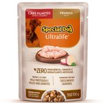 Carne de frango, carcaça de aves, miúdos de suínos, plasma sanguíneo desidratado de suíno, gelatina, farinha de batata doce, farinha de trigo, amido modificado de milho, dextrose, proteína isolada de soja, proteína texturizada de soja, óleo de aves, celulose, levedura de cana de açúcar hidrolisada e desidratada, biomassa de microalgas desidratada (Schizochytrium sp.), extrato de Yucca schidigera, subproduto da extração da L-cistina, cloreto de sódio, carbonato de cálcio, cloreto de potássio, água, glicina, cloridrato de L-Cisteína monohidratado, DL-metionina, vitamina D3, vitamina E, vitamina K3, vitamina B1, vitamina B2, vitamina B6, vitamina B12, vitamina C, niacina, cloreto de colina, ácido pantotênico, ácido fólico, biotina, iodato de cálcio, minerais (glicinatos: ferro aminoácido quelato, cobre aminoácido quelato, manganês aminoácido quelato e zinco aminoácido quelato), iodato de cálcio, goma guar, carragena, goma xantana, tripolifosfato de sódio, caramelo I.