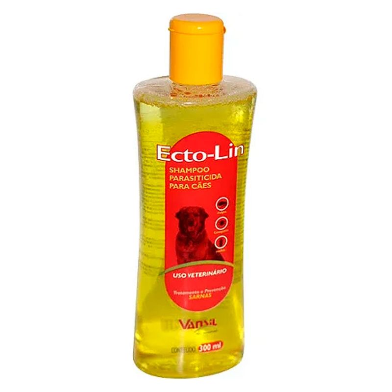 INDICAÇÃO:Ecto-Lin é indicado para cães, no controle de pulgas e piolhos, auxiliar no combate dos carrapatos e no tratamento das sarnas, deixando os pelos mais sedosos.FÓRMULA:Cada 100 ml contém:Permetrina 0,04Lauril Sulfato de Sódio 10,0 gVeículo q.s.p. 100 mlApresentação: Frasco com 300 mL.MODO DE USAR:Via de administração: Tópica.Aplicar sobre os pelos umedecidos, massageando até alcançar uma espuma homogênea em todo o corpo do animal. Aguardar alguns minutos para atuação do produto, enxaguar em seguida. Repetir a operação para 2 a 3 dias, ou até que se eliminem os ectoparasitas.