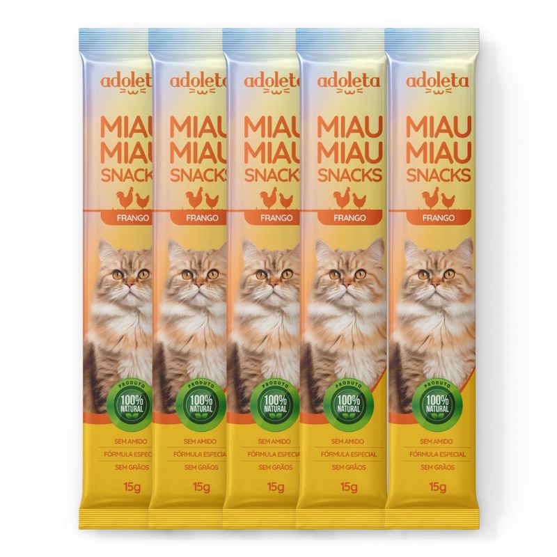 Miau Miau Adoleta é um snack para gatos, produzido com proteínas selecionadas e baixas calorias. É um lanche natural, sem amido e com fórmula especial sem grãos. Contribui para uma pelagem mais macia e brilhante. Ajuda a fortalecer o sistema imunológico.
