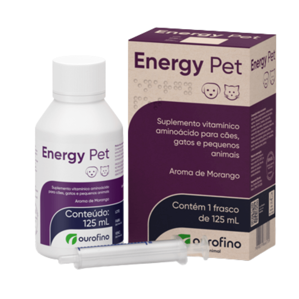 Caninos e felinos: administrar por via oral, na forma pura, Suplemento vitamínico aminoácido para cães, gatos e pequenos animais. Aroma Morango Energy Pet diluído em água ou alimento, na dosagem de 0,5 mL (15 gotas) para cada kg de peso corporal, a cada 12 horas. Pequenos animais (aves e roedores): administrar por via oral 3 a 4 gotas, duas vezes ao dia, diretamente na boca do animal, ou 1 mL (30 gotas) diluído em 100 mL de água de bebida. Energy Pet deve ser administrado durante 15 a 30 dias.