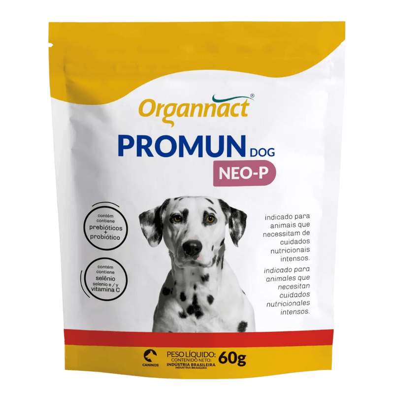 Suplemento vitamínico mineral contendo prebióticos e probiótico indicado para cães em todas as fases de vida que necessitam de cuidados nutricionais intensos. Pó palatável em sachê com 60g.