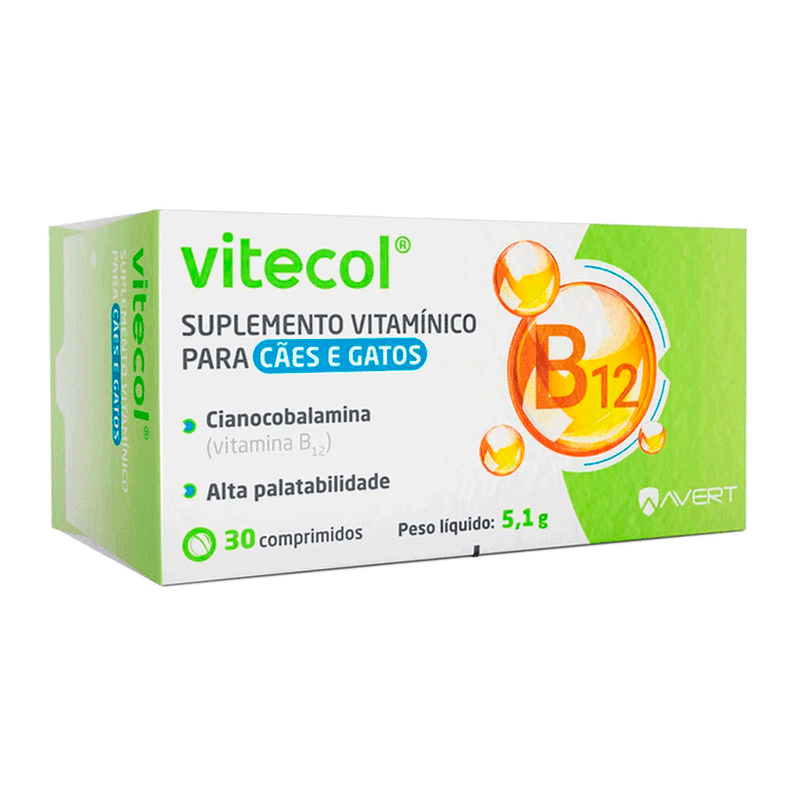 VITECOL® é um suplemento vitamínico indicado para os que necessitem de aporte nutricional de cianocobalamina (vitamina B12). Cartucho com 30 comprimidos bissulcados.