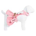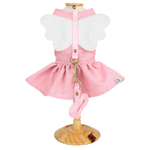O Vestido Lady Anjinho é confeccionado em Linho 62% algodão 38% poliéster com sua parte interna em acoplado, impedindo os nós no pelo do pet. O Vestido possui Velcro na barriga e pescoço e meia argola para prender a guia, deixando o pet pronto para o passeio. O vestido é uma peça elegante e prática que encanta os tutores, com um design único em homenagem ao nosso mascote Leo.